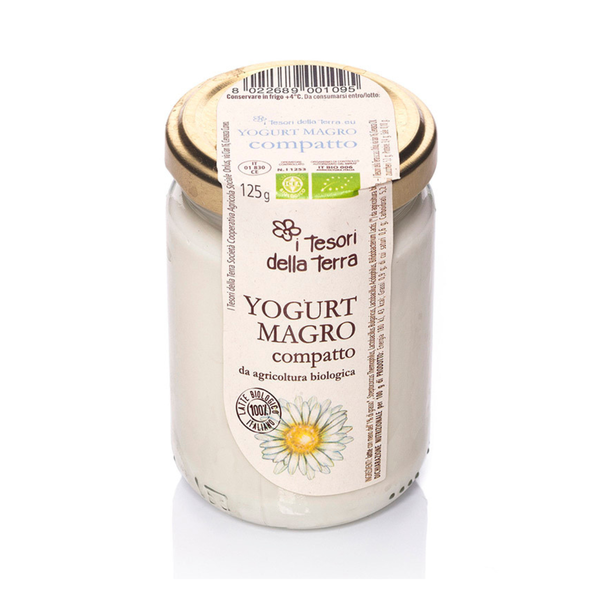 Lo yogurt magro compatto I Tesori della Terra è uno yogurt naturale a coagulo intero prodotto a partire da solo latte magro (meno dell’1% di grasso) da agricoltura biologica. Il confezionamento precede la fermentazione, che avviene direttamente all’interno dei barattoli rendendo il prodotto più sodo e consistente rispetto agli altri yogurt.